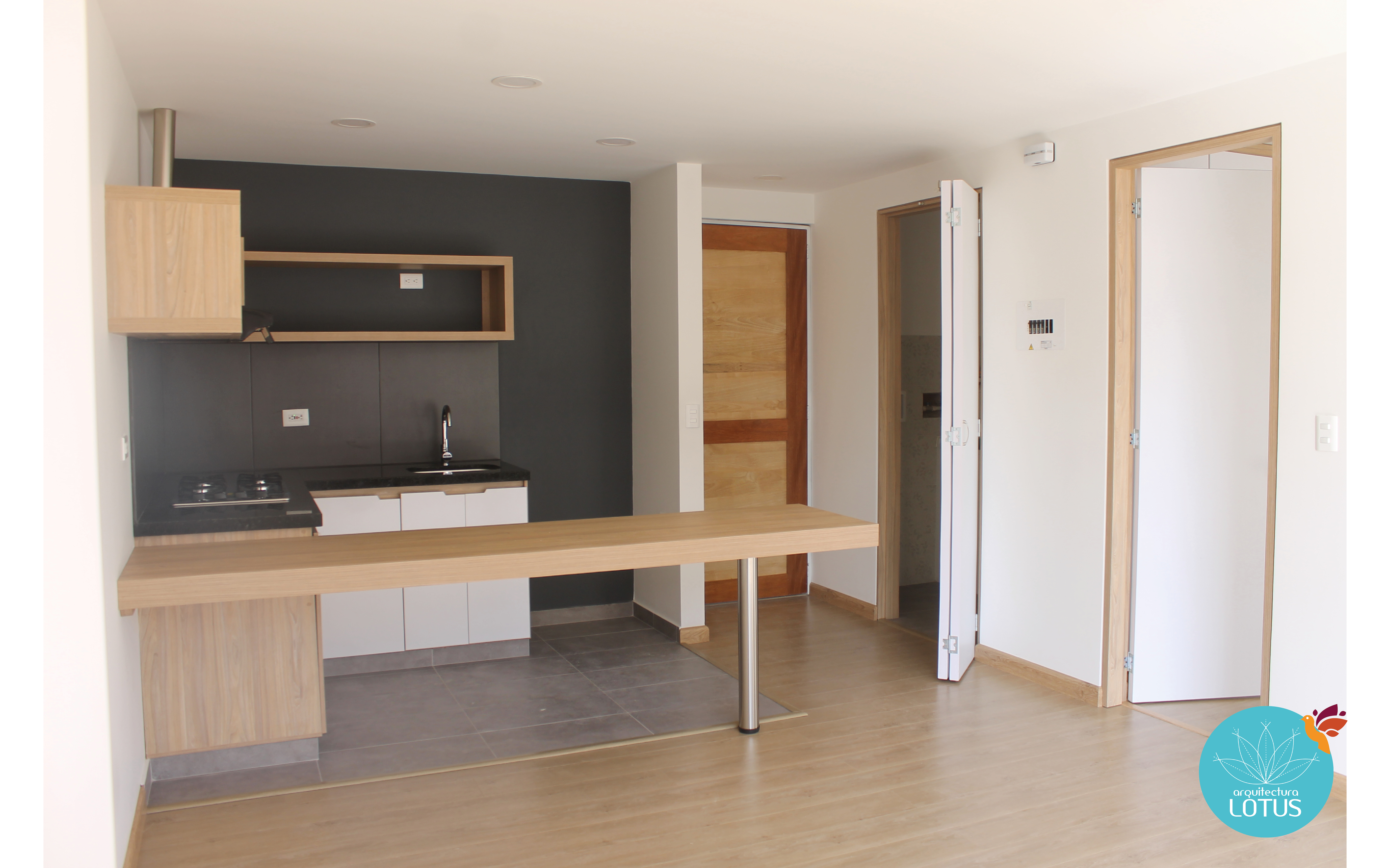 | Cocina | INTEGRAL, CON MUEBLE ALTO Y BAJO EN MADERA CONTRACHAPADA Y MESON EN GRANITO. |